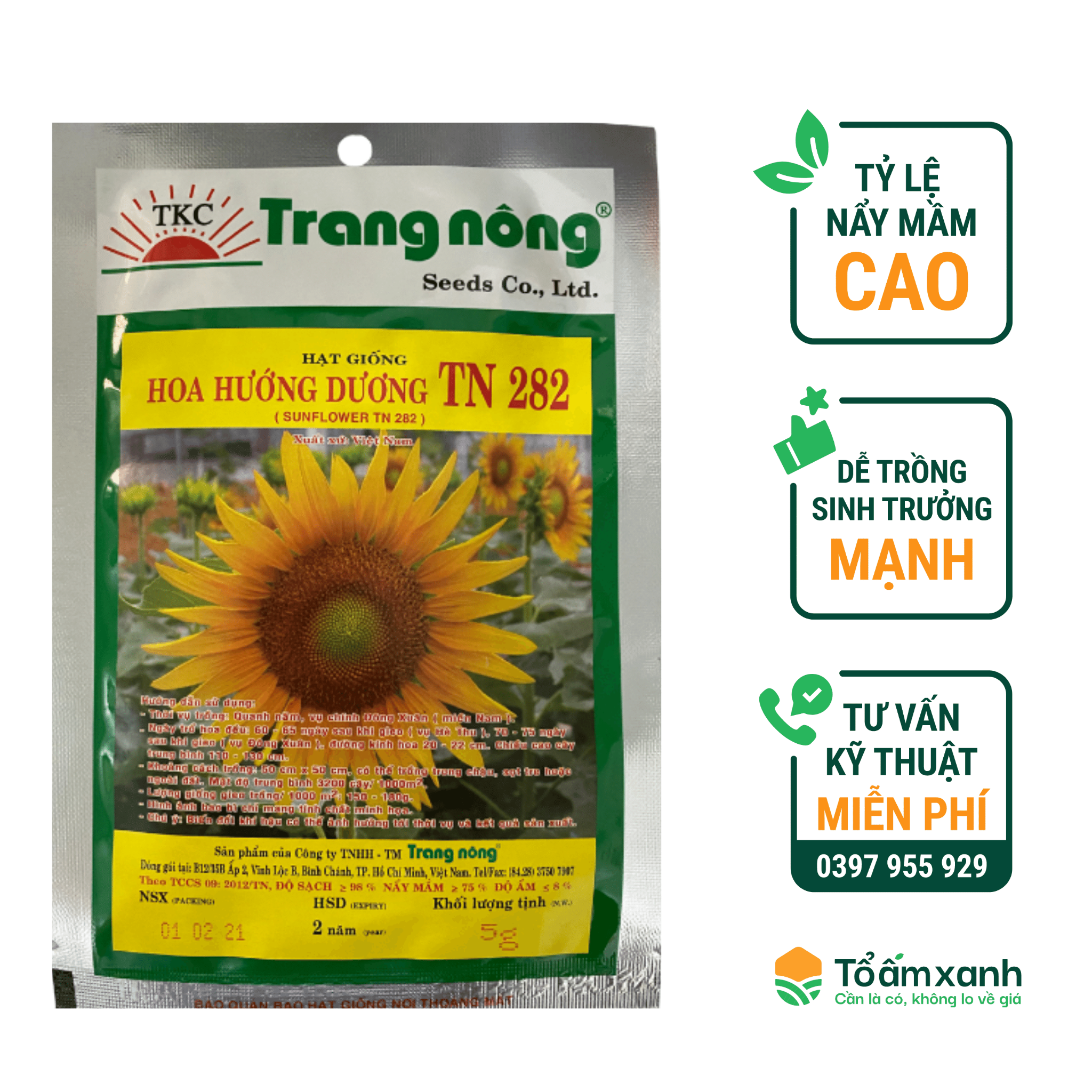 - Hạt giống hướng dương Trang Nông thuộc nhóm dễ trồng, chịu nóng tốt và trồng được vào mùa hè chỉ cần bạn cung cấp đầy đủ ánh sáng, và tưới nước, bón phân đúng cách. Với loại hoa này, bạn có thể trồng ở vườn, hoặc trong chậu hoặc thùng xốp to.