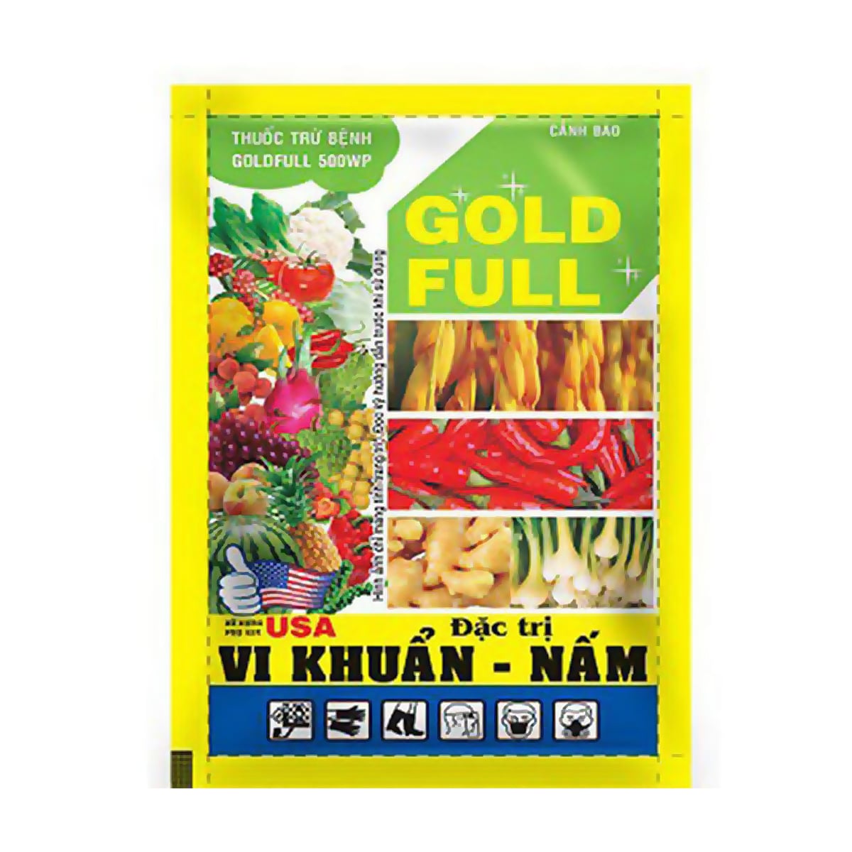 - GOLDFULL500WP là sản phẩm kết hợp giữa hai hợp chất kháng khuẩn và kháng sinh mới nhất, thấm nhanh có tác dụng ức chế tổng hợp protein của nấm và vi khuấn gây hại cho cây trồng